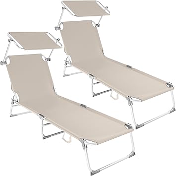 Tectake Lot De 2 Chaise Longue Bain De Soleil En Aluminium Pliable