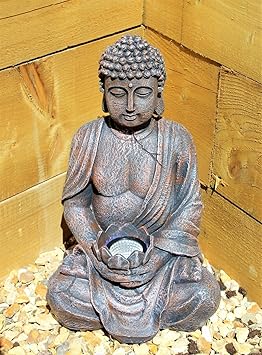 Grande Statue De Bouddha 39 Cm Energie Solaire Effet Pierre Pour